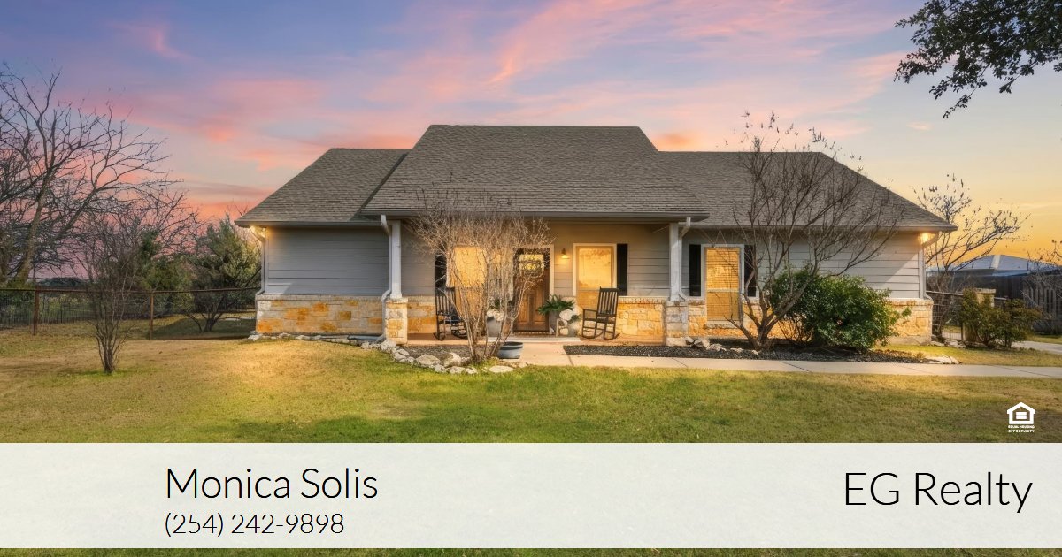 The private primary suite offers a walk-in closet, dual vanities, and a walk-in shower. Outside, enjoy a covered patio, pool, and a versatile shop with storage and additional flex space—all just about a mile from the heart of McGregor.