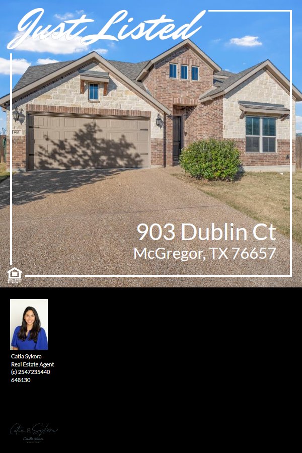 Welcome to 903 Dublin Ct, a stunning two-story home tucked away on a peaceful cul-de-sac in the heart of McGregor, TX. Built in 2019, this spacious residence offers 6 bedrooms and 4 full bathrooms, including the unique potential for two primary suites, perfect for multi-generational living, guests, or flexible lifestyle needs. Step inside to discover two inviting living spaces, ideal for gathering or relaxing, anchored by a charming wood-burning fireplace that adds warmth and character. The open-concept kitchen flows seamlessly into the main living area, offering an ideal layout for large gatherings. Upstairs and down, the home provides abundant space, privacy, and comfort for everyone. Outside, enjoy a covered back patio, perfect for morning coffee, along with neighborhood sidewalks that promote easy strolls and added safety. This home delivers the privacy you want with the convenience you need. All in a beautifully designed modern build. 903 Dublin Ct offers exceptional space, thoughtful features, and a welcoming setting, ready to become your next home!